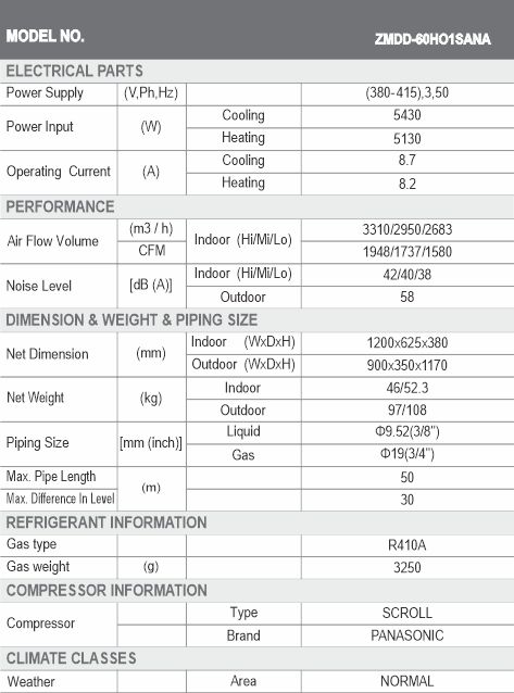 داکت اسپلیت زانتی 60 هزار مدل ZMDD-60HO1SANA